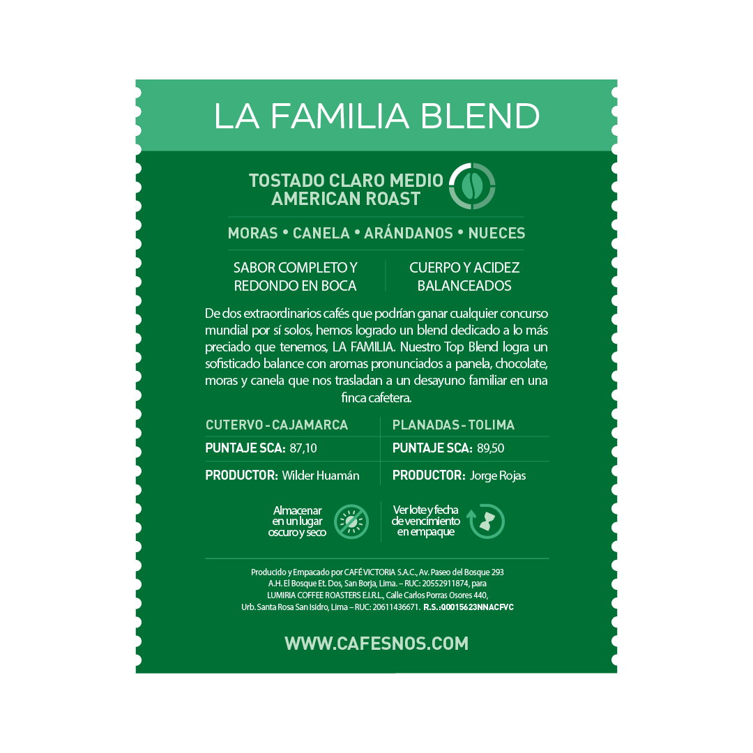 Hemos combinado dos cafés excepcionales que podrían brillar en cualquier concurso mundial. Este blend, creado con amor, rinde homenaje a lo más valioso: ¡la familia! Su sofisticado equilibrio de sabores te envuelve en aromas a panela, chocolate, moras y canela, llevándote a esos mágicos desayunos familiares en una cálida hacienda cafetera. ¡Es una experiencia que no querrás perderte!